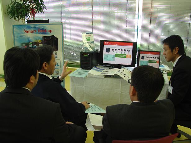 ■ご来場の御礼 2010年4月20日〜21日に開催されましたタクテックス株式会社合同展示会におきましては、ご多忙中にもかかわりませず ご来場いただきまして、誠にありがとうございました。 本展示会では、オリジナルバックアップシステム「SmartBackup」の展示、デモンストレーションをはじめバックアップ 高効率セミナーも開催されました。多くの皆様に高い関心をお寄せいただきまして盛況のうちに収めることができ、深く 感謝いたしております。製品につきましてご不明な点、ご希望などございましたらお気軽にお問合せくださいませ。 皆様から頂いた貴重なご意見をもとに、今後も皆様のお役に立てる製品をご提供できるよう努力して参ります。 ■当日の模様