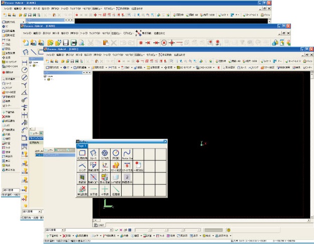 EXCESSの伝統的なコマンドメニュー形式を継承し、自由にレイアウトする事も可能です。 HYBRIDからは視認性の高いアイコンに刷新しツールバーでの選択も容易になりました。 ランチャーにコマンドを格納でき、更なる操作性、作図領域の拡大も可能となりました。 |