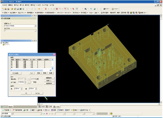 2次元加工図形、3次元モデルからワーク及び加工部位を定義可能です。2軸加工部位はモデルから自動的に取得出来る他、任意に面やエッジを指示し面上の穴や2.5次元加工、WC上下異形等を定義出来るため、2次元、3次元混在の環境でもこの1台で完結できます。 |